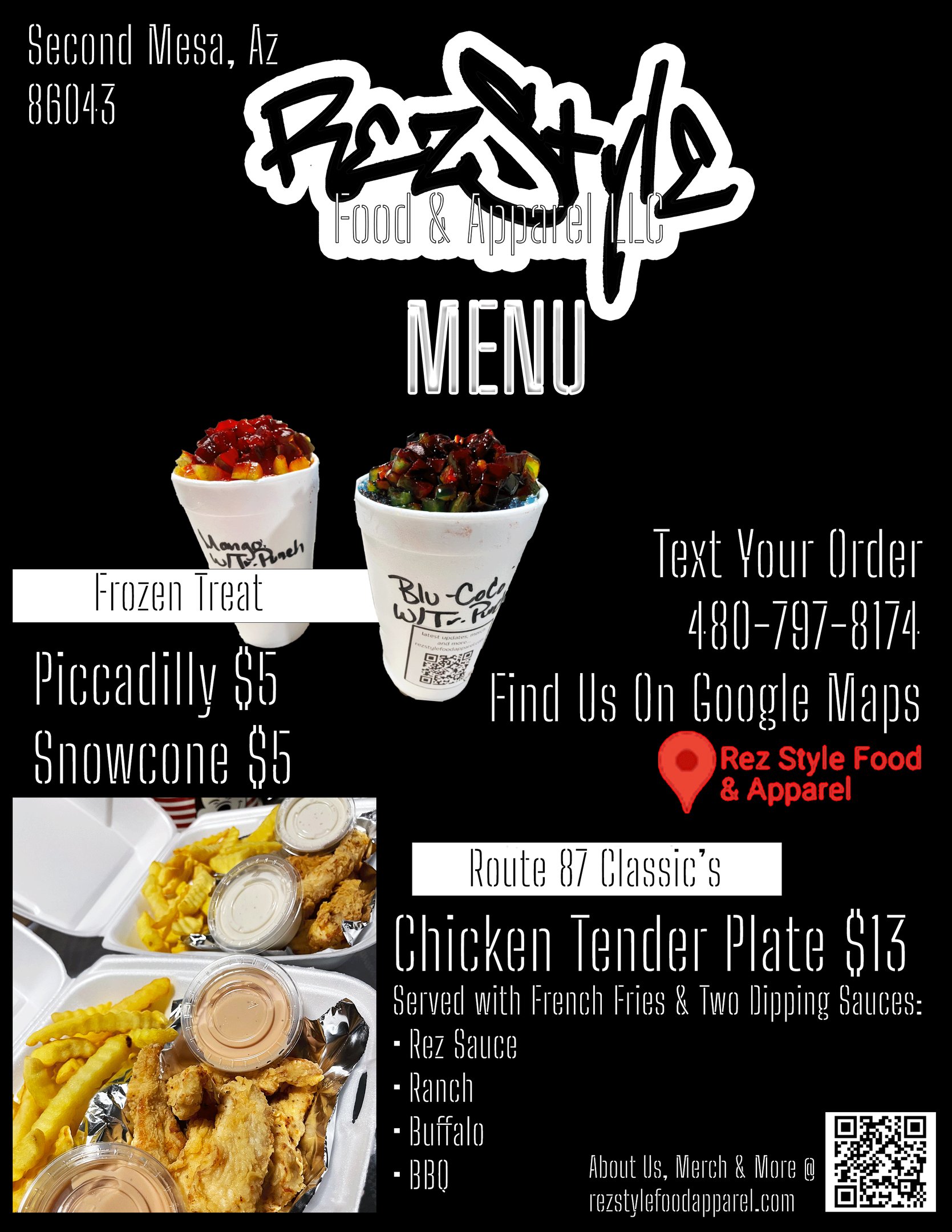 Now, we’re doing it our way as Rez Style Food & Apparel. We’re talking golden fry bread, crispy taquitos, and our famous 'soaked' wings that’ll have you coming back for seconds before you even finish the first.
