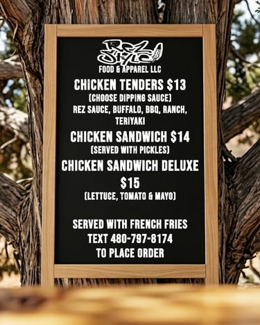 Now, we’re doing it our way as Rez Style Food & Apparel. We’re talking golden fry bread, crispy taquitos, and our famous 'soaked' wings that’ll have you coming back for seconds before you even finish the first.